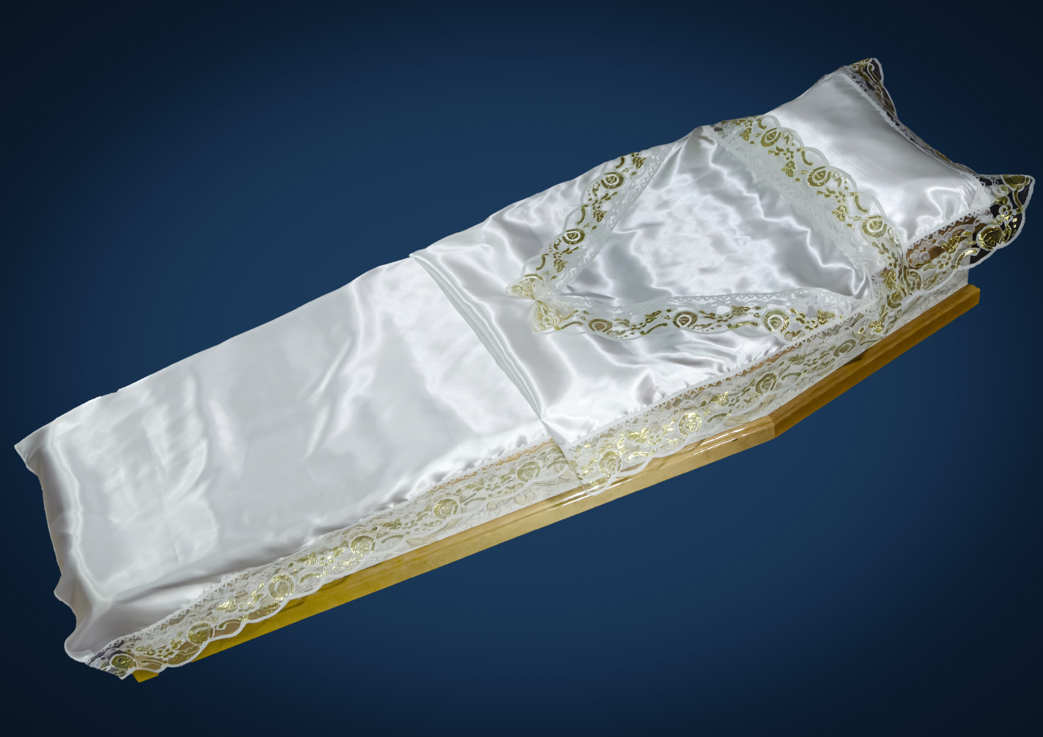 ткань-атлас белый, декор-бант из кружева, упаковка-фасовочный пакет