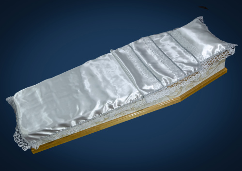 ткань-атлас белый, декор-кружево, тесьма с люрексом,упаковка-фасовочный пакет