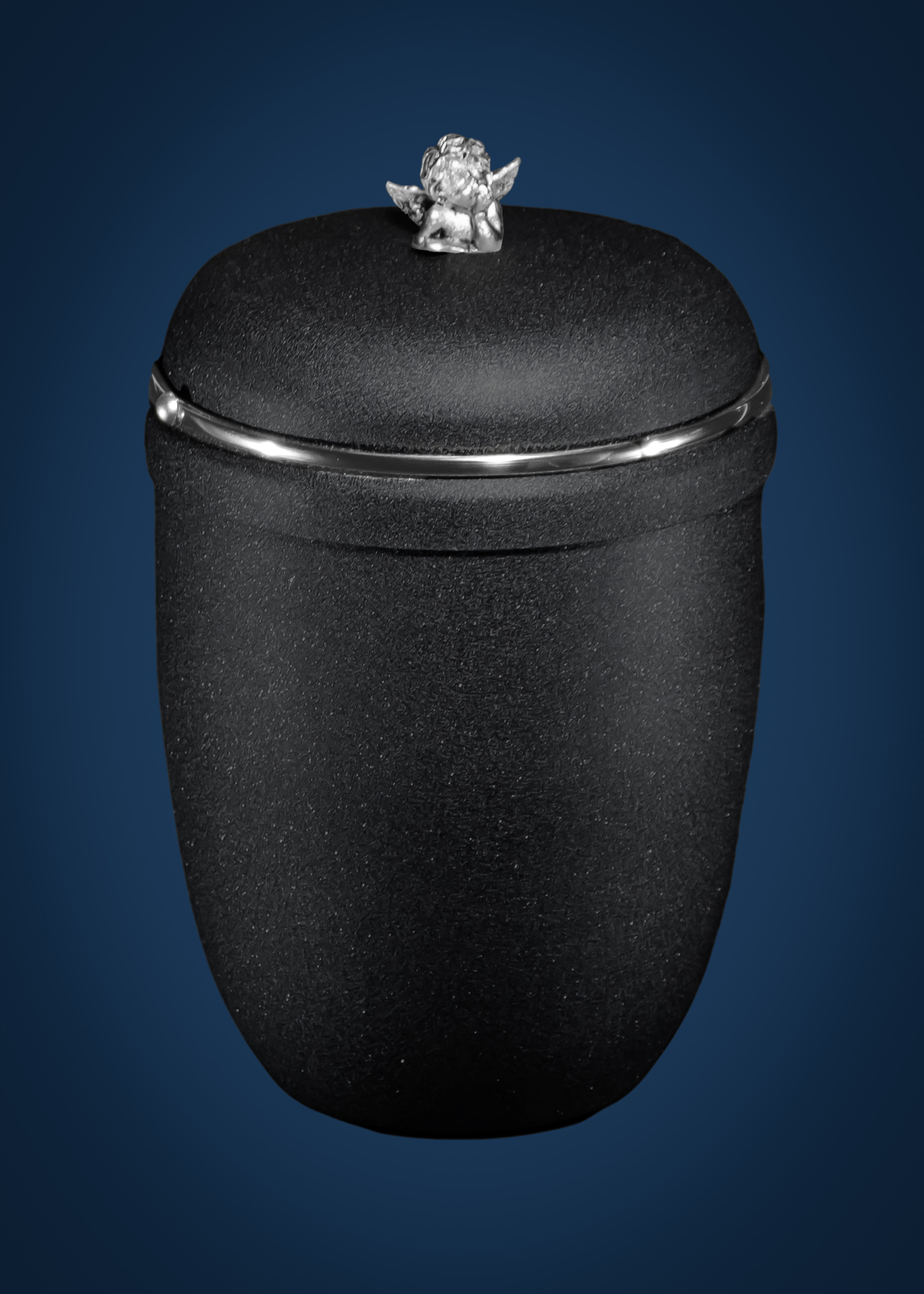 Урна для праха металл муар молдинг с ангелом на крышке (Черный)