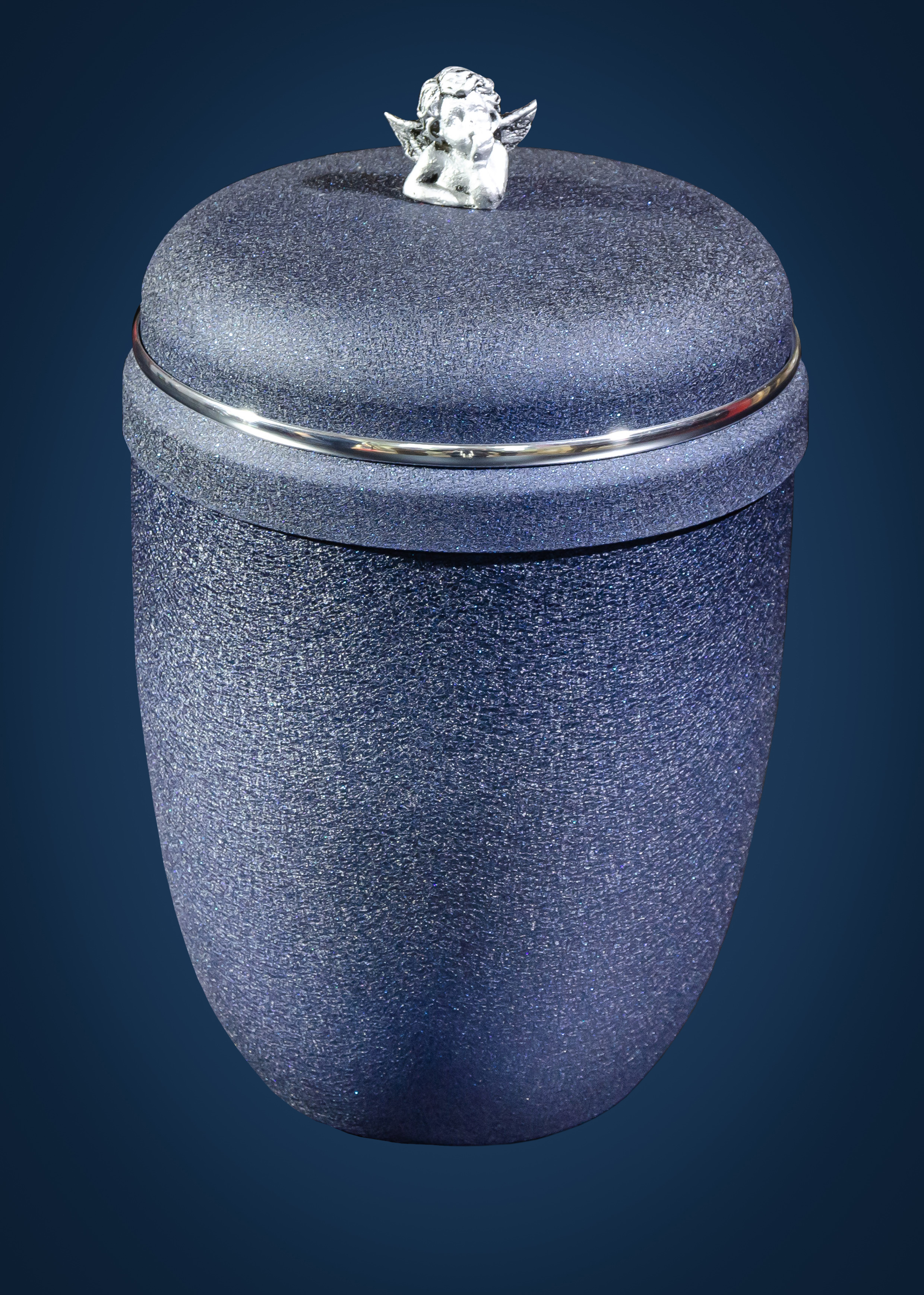 Урна для праха металл муар молдинг с ангелом на крышке (Синий)