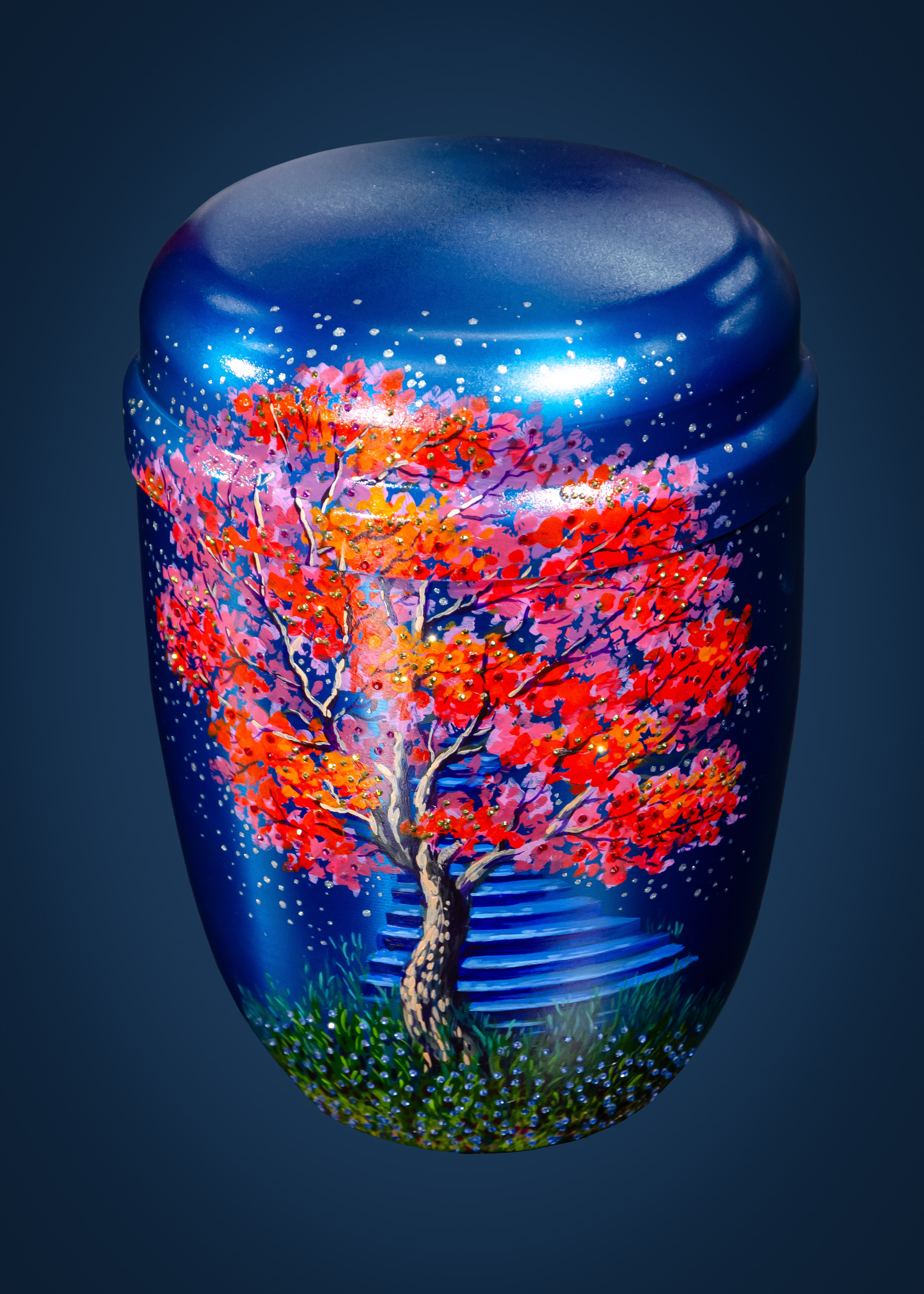 Урна для праха "Северное сияние" металл лак (Синий)